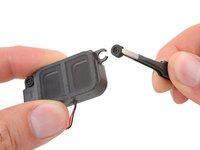 Use a Phillips screwdriver to remove the two 7.6 mm screws securing the right speaker.