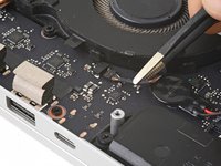 Use tweezers to peel the right side of the fan tape from the heatsink.