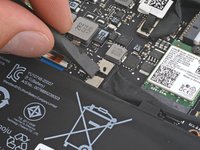 Use blunt nose tweezers or your fingers to peel and remove the battery cable tape.
