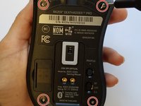 Remove the four 1.2 mm screws from each corner of the mouse using a T6 Torx screwdriver.