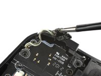 • Using the pointed end of a spudger, push the grey tabs on the interconnect socket away from the socket, parallel to the interconnect cable, to release the cable.