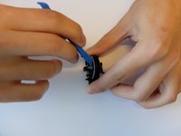Remove the scroll wheel feedback bar from the scroll wheel by holding down the spring and using angled tweezers to remove it from its placement.