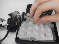 Remove the bottom casing, leaving the motherboard attached to the scroll wheel and cord.