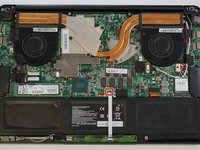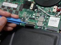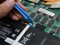 Slide both ends out of the ZIF connector. Remove the touchpad ribbon cable that overlaps the battery.
