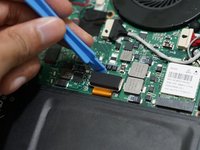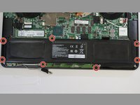 Use the T5 Torx screwdriver to unscrew the 10 screws found at the bottom of the laptop. Then, remove the back plate of the laptop.