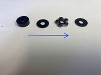 The order should be from the chair to the rubber bumper, washer, bearings, and then the other washer.
