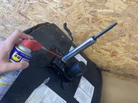 Remove the spring retaining clip by lifting with the flathead screwdriver and sliding it off with your thumb.