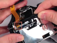 Gently but forcefully lift up on the parallel cable connecting the two halves of the camera.