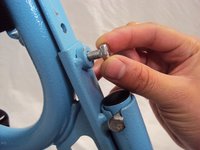 Screw in the bolt to the top socket to secure the height of the footrest.
