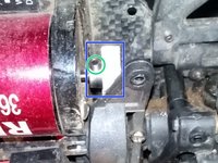 To adjust, slightly open the green marked screw and tilt the motor in the desired direction.