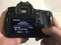 Once "OK" is highlighted, press the middle of thumb pad to initiate the formatting of the card.