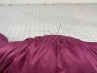 The stitching of a Patagonia insulated jacket can sometimes snag, pulling on the fabric and causing bunching around the thread.