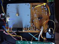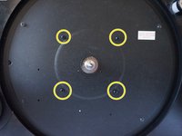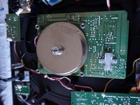 Loosen 8 screws with a Phillips screwdriver at the bottum of the turntabel. (signed red in picture).