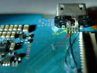 Optional: use some electrical adhesive tape (not very sticky) to hold the wire on the right place while soldering. Watch where are you putting it - not over any small sensitive components