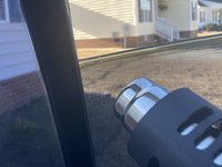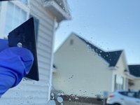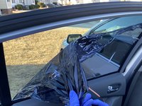 When you've pulled enough film off so that you don't burn your fingers while simultaneously pulling, use a back-and-forth motion with the heat gun along the area where the film is still on the window while pulling on the film. (See next step)