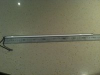 The CCLF tube assemblies are made up of a U shaped reflector with 2ea individual tubes inside. The entire assembly is 457mm long and 7.6mm wide. There are no part numbers on the assembly however there is a S on the end with the wires attached and an 18 on the other end.