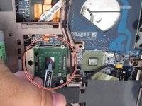 Opposite the cooling fan is the component that contains the RAM card. Remove the screws holding the component in place. Carefully detach the component to expose the RAM card.