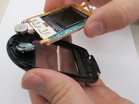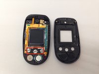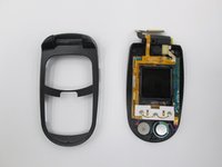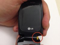While grasping the top and bottom sections torque the pieces until the indicated hinge has popped out. The two sections of the phone are now able to separate.