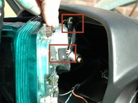 Not pictured are the wires and bulbs for the glow plug and seat belt light, and the spade plug for the clock. Keep track of which bulb went in which socket - the wires will be different colors. On this car the wire for the seat belt light was green and the glow plug bulb wire was blue.