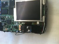 Flip the screen down. To disconnect the ribbon cable from the logic board, rock each end of the brown metal retainer that holds the ribbon cable in place until the ribbon disconnects.