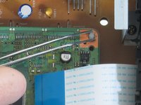 Remove the blue ribbon wire from its connector. When doing this, be cautious to not damage the connector.