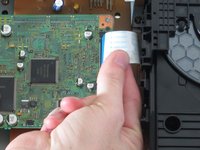 Lift up the five tabs securing the front panel to the chassis. There are three on the bottom, and two on the inside edges of the panel. Panel should then lift off the player.