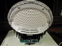 Tip: Lift one end of the ring, tilting it toward the back of the alarm clock. That will get the hooks out from under the rear rim so you can start removing it..