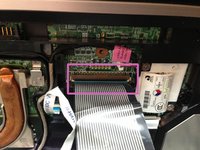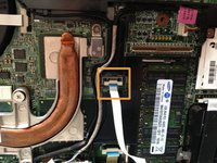 Release the larger ribbon cable by flipping the brown retainer up so it is parallel with the ribbon cable