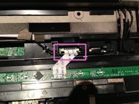 Release the larger ribbon cable by flipping the brown retainer up so it is parallel with the ribbon cable