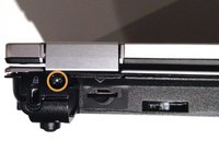Turn the computer over with the front toward you and the open the computer as far as possible.
