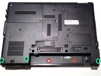 With the laptop upside down, locate and remove the two Torx T8 2.5×7.0 screws.