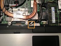 NOTE There are 2 antenna cables that go from the display assembly through the hole shown and connect to the WWAN (3G) WiFi card if it is installed. In my case they were just threaded into the hole to make things tidy as I didn't have a WWAN card.