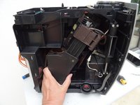 Unscrew the two slotted screws inside the bean compartment. The screws have a rubber washer and will not come out completely.