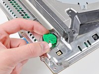 Hay un gancho de plástico ubicado en un orificio en la esquina superior trasera derecha. Empuja con cuidado el gancho de plástico un poco desde la parte trasera de la máquina con un spudger para liberar la parte trasera derecha de la carcasa.