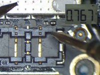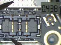 Disconnect the charging cable and remove the display assembly. Run diode mode measurement of J2400. The measured value of Pin 5 is 436, which is normal. The measured value of Pin 2 is OL, which is abnormal. Normal value should be around 600. Judging by this, Pin 2 relevant circuit has been open-circuited.