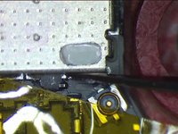 Apply low-temperature Solder Paste to the bonding pad of FL2400. Heat with Hot Air Gun at 240℃, air flow 2. Then connect the two pins with melted Solder Paste. Wait for the logic board to cool for 5 minutes. Clean with PCB Cleaner afterwards.