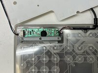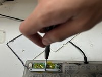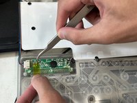 Remove the three screws on the metal bracket located towards the top left on the keyboard.
