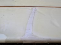 This guide showed how to fill the gash, but stopped before showing/explaining how to re-glass over that area. If this repair is “done” without reglassing over the gash, that board will break soon, since the skin provides most of the structural strength and the gash interrupts that structure.