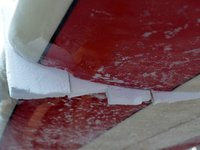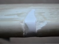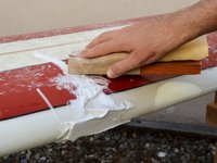Place the sandpaper through the crack and pull back and away from the crack. This will smooth down the edges of the thin fiberglass on the top and bottom.