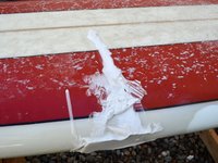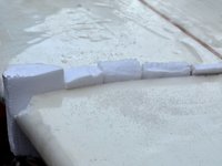 Be careful around the rail. Use the fiberglass of the non-damaged rail to guide the shape of the foam here.