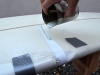 To glass the rail, make a 'dam' out of tape. This will catch the resin and create a pool to cover all areas of the rail.