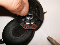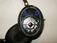 With the ear pad removed, the Phillips screws that hold the drive to the case, are now visible.