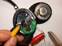 Simple setup to test the driver (speaker) Two leads with alligator clips, connect those to an 3.5mm audio jack extension.