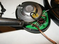 Reassemble the headphones after double checking the solder job. This one also received new ear pads (readily available at online auction sites) and works perfectly.