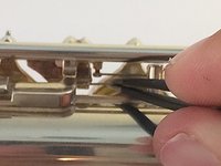 On the other side of the flute, remove the screw connected to the same rail from the previous step.