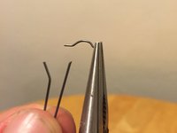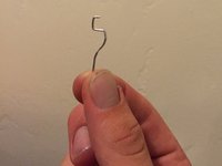 Bend in paperclip into the hook shape pictured so it will be able to loop around the divots on the plastic lever.
