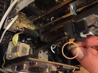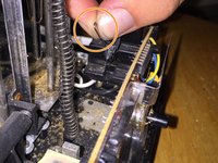 Locate broken metal lever catch to the right of the large spring. It should look like a paperclip.