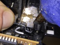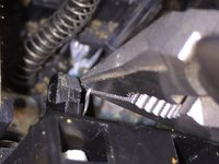 Place the newly bent paperclip onto plastic lever weaving it through the divots. Make sure that when the main spring comes down it engages the paperclip to push the lever down.