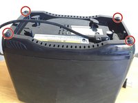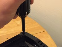 Use the screwdriver to remove the four 12.5 mm Phillips #1 screws. The screws are located on the four corners of the toaster under the rubber covers.