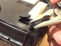 Use needle nose pliers to remove the rubber screw covers located on the four corners of the bottom of the toaster.